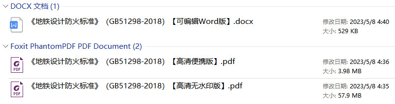 《地铁设计防火标准》(GB51298-2018)【全文附高清无水印PDF+DOC/Word版下载】