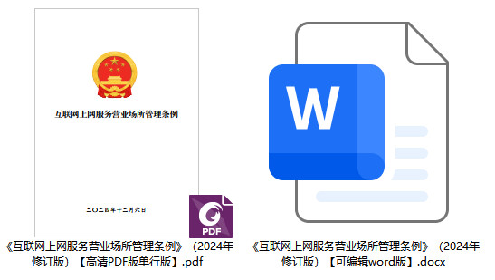 全文下载(高清PDF版单行本+可编辑word版):《互联网上网服务 营业场所管理条例》(2024年修订版)