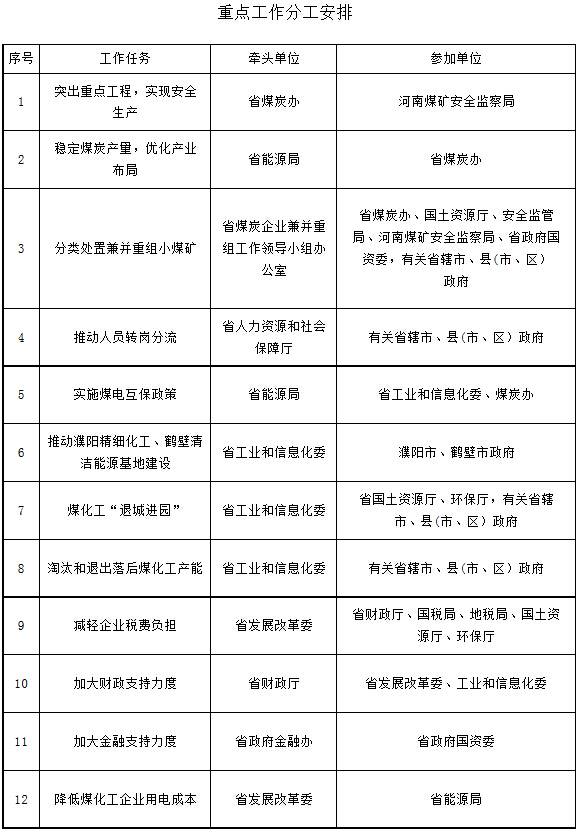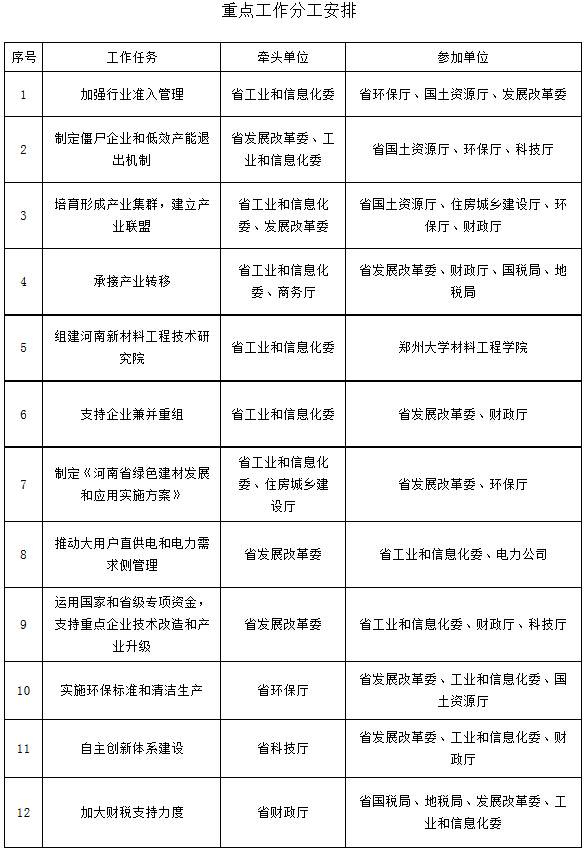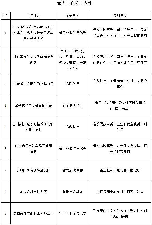 《河南省重点产业2016年度行动计划》围绕高端装备制造业、电子信息产业、食品工业、能源原材料工业转型发展、医药产业、节能环保装备、消费品工业等8个重点产业,制定了10个年度行动计划,分别是《高端装备制造业2016年度行动计划》《电子信息产业2016年度行动计划》《食品工业2016年度行动计划》《汽车和新能源汽车产业2016年度行动计划》《能源原材料(煤炭及煤化工部分)工业转型发展2016年度行动计划》《能源原材料(有色、钢铁、建材部分)工业转型发展2016年度行动计划》《医药产业2016年度行动计划》《节能环保装备2016年度行动计划》《消费品工业(现代家居部分)2016年度行动计划》和《消费品工业(纺织服装部分)2016年度行动计划》。各行动计划重点项目由省制造强省建设领导小组另行印发。