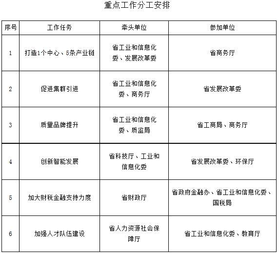 (一)着力打造全球重要的智能终端研发制造基地。把智能终端作为全省培育优势产业的战略重点,加快打造从手机研发、产品设计、软件开发、整机制造、零部件生产到销售、物流、售后服务于一体的万亿级智能终端全产业链集群,建设全球重要的智能终端研发制造基地。