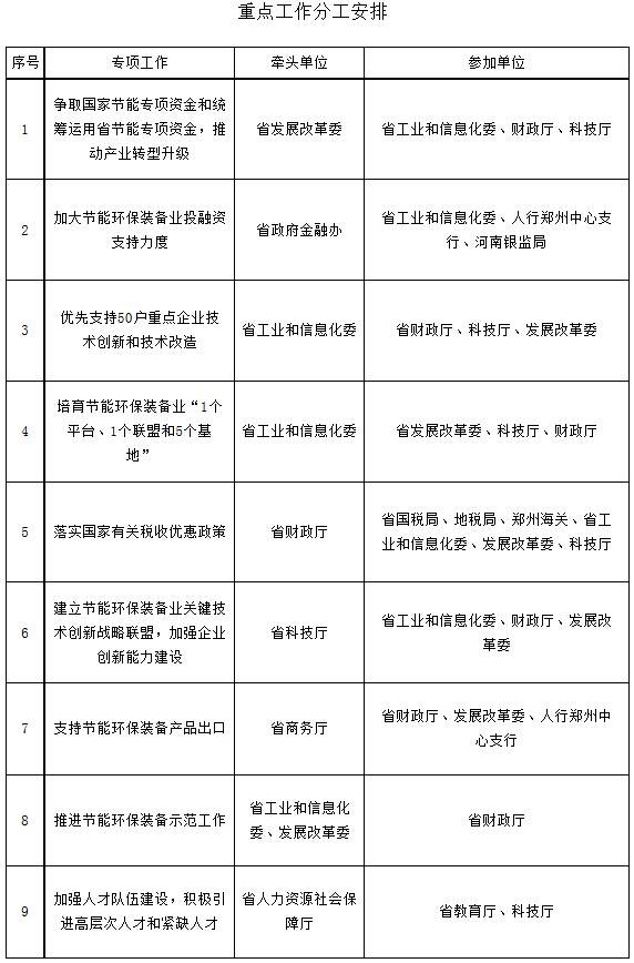 (一)加强组织协调。建立省、市、县三级联动机制,围绕打造产业基地、培育龙头企业、推进重点项目等,为节能环保装备业发展创造良好环境。各地要结合各自实际,制定实施方案和配套措施,加强对市场主体行为的引导,做好跟踪监测和信息发布工作,确保各项工作落实到位。