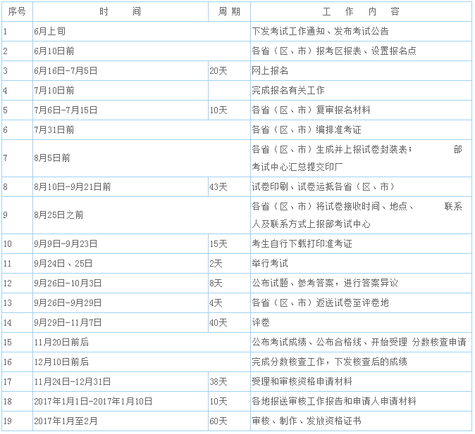 附件2:2016年国家司法考试工作时间表