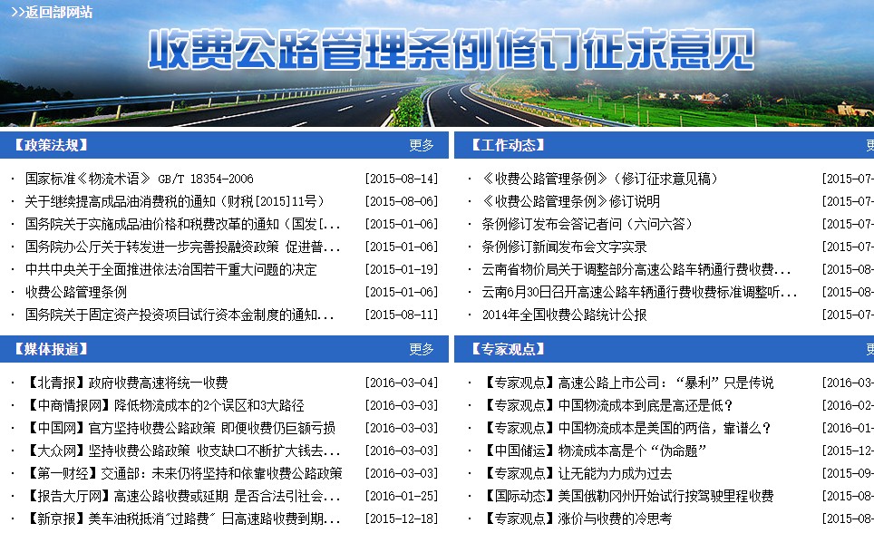 2.以公开促进重要政策的制定。为做好收费公路管理、出租汽车行业管理制度等重大政策调整,我部加强前期调研、征求意见、专家论证、会议研究及政策解读等有关环节的信息公开,主动将改革的每一步进展及时向社会公众公开,认真听取人民群众对有关政策措施的意见,为科学决策奠定了基础。