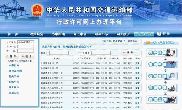1.进一步推进行政权力运行信息公开。一是建立管理权力清单制度并对外公开。二是建立行政审批事项动态公开机制。我部通过政府网站和中国交通报等行业媒体,对分批取消下放的35项行政审批事项主动及时向社会公告,并通过召开新闻发布会的形式向媒体公布。三是积极推行行政审批项目网上办理。已上线运行的“交通运输部行政许可网上办理平台”,对网上申请的行政许可进行受理、审批和审批结果在线公示,现已有16项行政审批事项在许可平台办理。