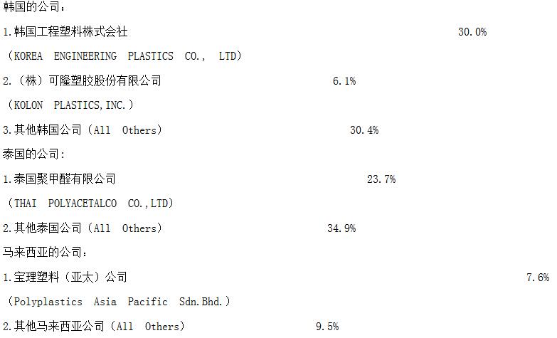 附件:中华人民共和国商务部关于原产于韩 国、泰国和马 来西亚的进口共聚聚甲 醛反倾 销调查的初步裁 定