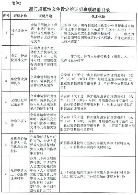 公安部关于不再要求提供有关规章设定证明事项和取消有关规范性文件设定证明事项的通知