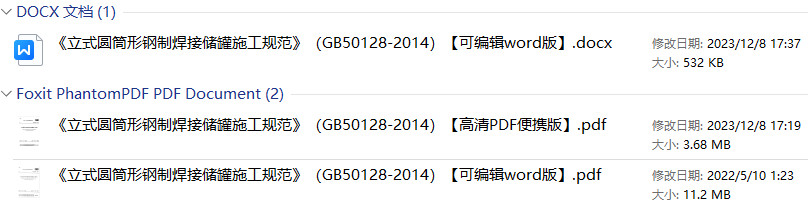《立式圆筒形钢制焊接储罐施工规范》(GB50128-2014)【全文附高清PDF+Word版下载】