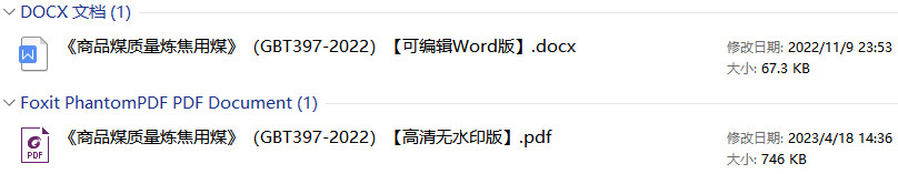 《商品煤质量炼焦用煤》(GB/T397-2022)【全文附高清无水印PDF+DOC/Word版下载】