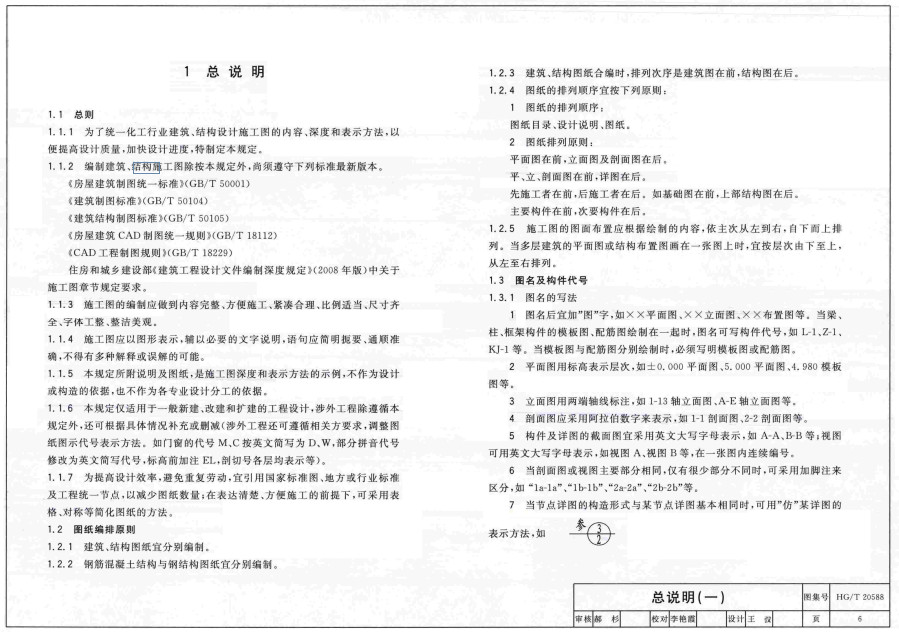 《化工建筑、结构施工图内容、深度统一规定》(HG/T20588-2012)【全文附高清无水印PDF版下载】