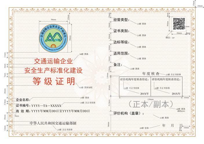 第三十条 交通运输企业安全生产标准化建设等级证明应按照交通运输部规定的统一样式制发,有效期3年。