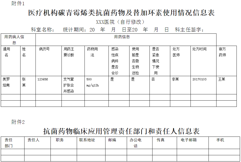 1.医疗机构碳青霉烯类抗菌药物及替加环素使用情况信息表