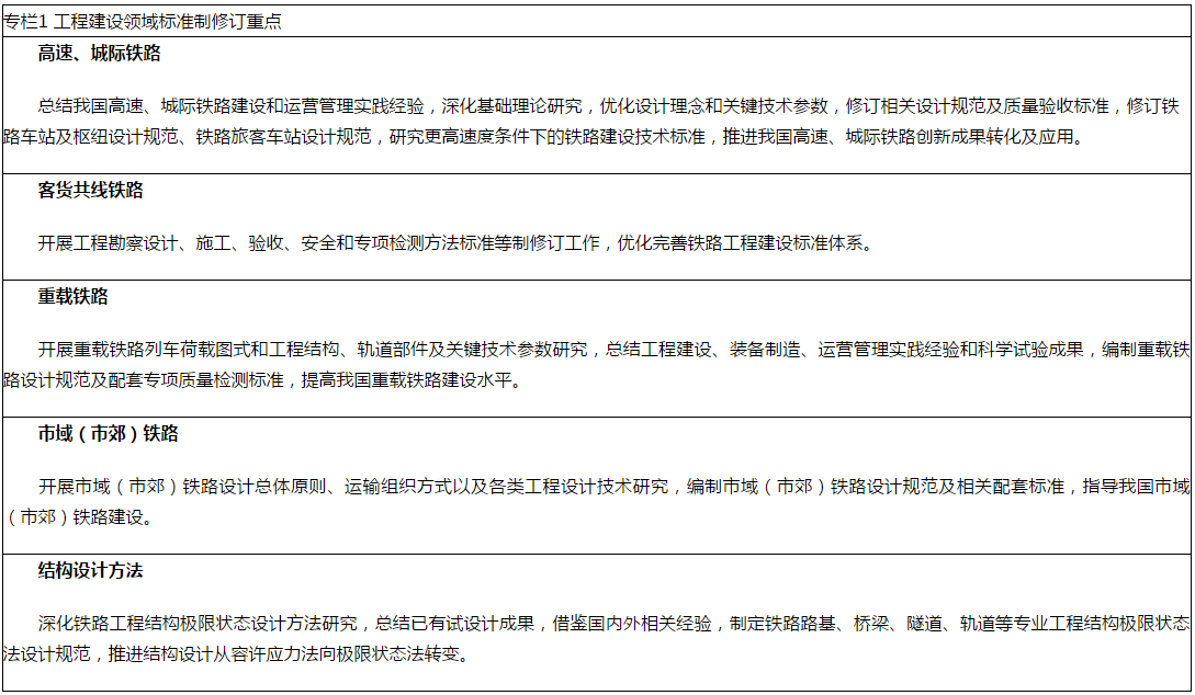 ——统筹规划、重点突破。立足铁路发展需求,加强标准统筹规划,推进重点领域标准制修订,对运营安全起决定作用的主体工程及相关设备、设施标准的薄弱环节加以补强,提高标准完整性和适用性。