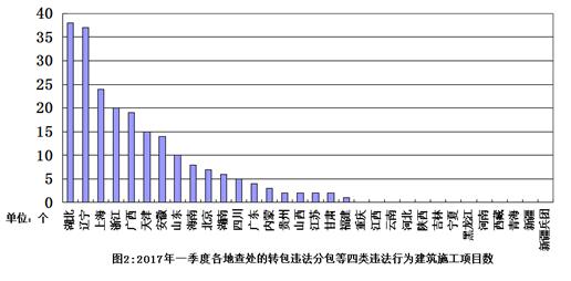 现将2017年一季度各地住房城乡建设主管部门上报的建筑工程施工转包违法分包等违法行为查处情况通报如下: