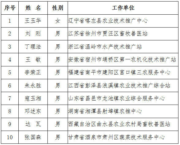 “全国十佳农技推广标兵”2019年度资助项目人选名单