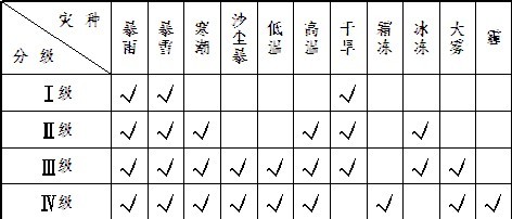 (1)暴雨:预计未来24小时3个及以上省辖市大部地区将出现50毫米以上降雨,且有超过100毫米的降雨;或者已经出现并可能持续。(2)暴雪:预计未来24小时3个及以上省辖市大部地区将出现5毫米以上降雪,且有成片超过10毫米的降雪。(3)寒潮:预计未来48小时6个及以上省辖市大部地区平均气温或最低气温下降8摄氏度以上并伴有5级及以上大风,最低气温小于等于4摄氏度。(4)低温:过去24小时3个及以上省辖市大部地区出现平均气温或最低气温较常年同期(最新气候平均值)偏低5摄氏度以上的持续低温天气,预计未来48小时上述地区平均气温或最低气温持续偏低5摄氏度以上(11月至翌年3月)。(5)高温:预计未来48小时6个及以上省辖市大部地区将持续出现最高气温为37摄氏度及以上的高温天气;或者已经出现并可能持续。(6)沙尘暴:预计未来24小时3个及以上省辖市大部地区将出现能见度小于1000米的沙尘暴天气;或者已经出现并可能持续。(7)大雾:预计未来24小时6个省辖市及以上大部地区可能出现能见度小于1000米的雾,且有成片的能见度小于500米的雾;或者已经出现并可能持续。(8)霾:预计未来24小时6个省辖市及以上大部地区将出现能见度小于2000米的霾;或者已经出现并可能持续。(9)霜冻:秋季霜冻(9月1日―10月31日),预计未来24小时6个及以上省辖市大部地区将出现霜冻天气。春季霜冻(3月1日―4月30日),预计未来24小时6个及以上省辖市大部地区将出现霜冻天气。(10)各种灾害性天气已对群众生产生活造成一定损失和影响。