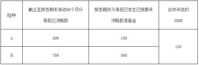 其中:各险种分摊比例=报告期末几个险种合并评估的已发生未报案未决赔款准备金(IBNR)÷〔合并评估险种截止至报告期末滚动(至少)12个月分保后已决赔款+合并评估险种报告期末分保后已发生已报案未决赔款准备金〕