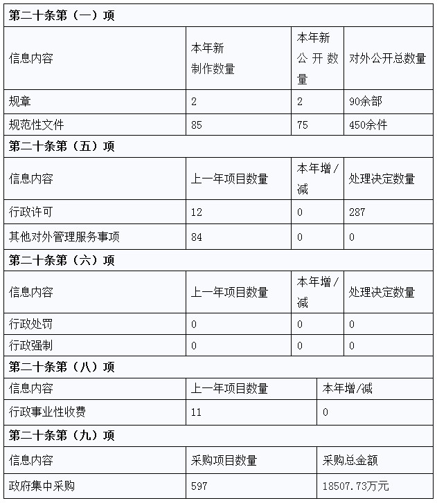 根据《中华人民共和国政府信息公开条例》(国务院令第711号)有关规定,编制本年度报告。本报告由总体情况、主动公开政府信息情况、收到和处理政府信息公开申请情况、因政府信息公开工作被申请行政复议和提起行政诉讼情况、工作中存在的主要问题和改进情况、其他需要报告的事项等内容组成。本报告中所列数据的统计期限自2020年1月1日起至12月31日止。