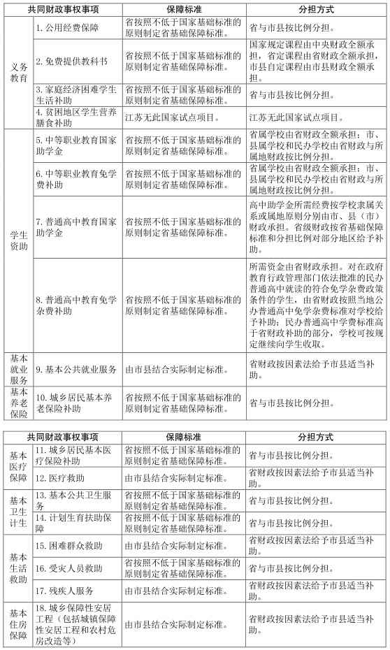 江苏省人民政府办公厅关于印发基本公共服务领域省与市县共同财政事权和支出责任划分改革方案的通知