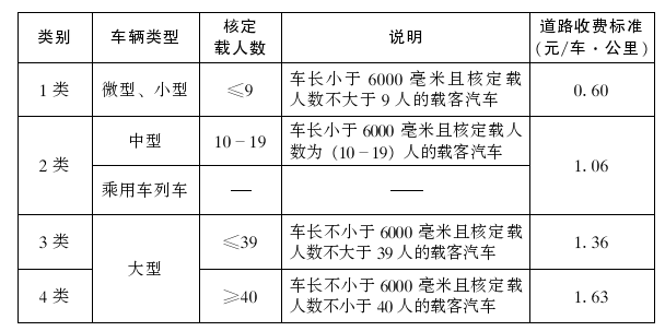 三、收费标准:除国家规定免缴通行费的车辆外,其他车辆均按以下标准缴纳车辆通行费。