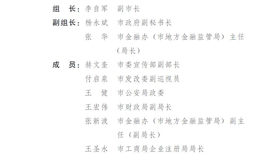 领导小组办公室设在市地方金融监管局,张华兼任办公室主任。今后,领导小组成员及办公室主任职务如有变动,由该成员单位接任领导自然替补,并由领导小组办公室负责通知。