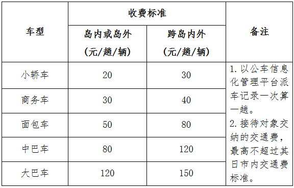 一、通过公车信息化管理平台派车为接待对象提供交通工具的收费标准。