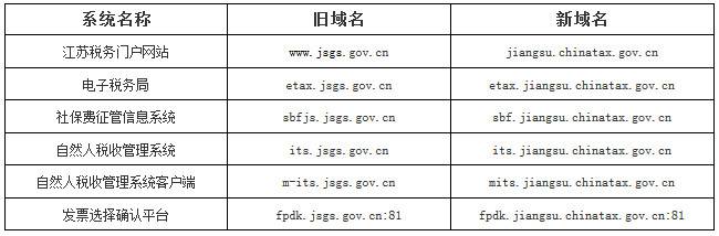 国家税务总局江苏省税务局关于门户网站等系统域名变更的通知