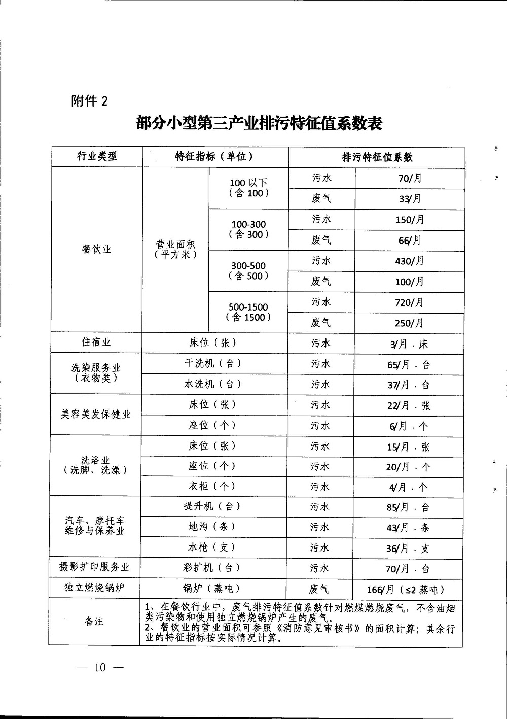 本办法第八条、第九条中的污水排污特征值系数、废气排污特征值系数按照附件2确定。