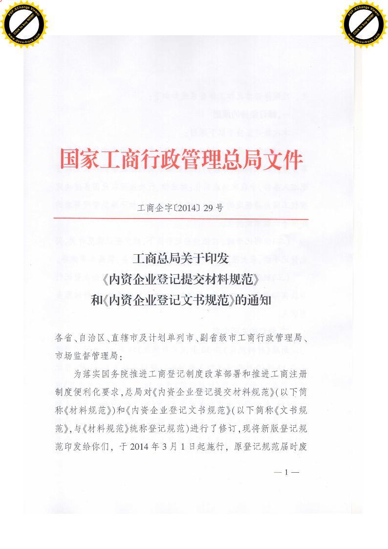 本文关键词: 工商企字, 工商总局, 内资企业登记提交材料规范, 内资企业登记文书规范